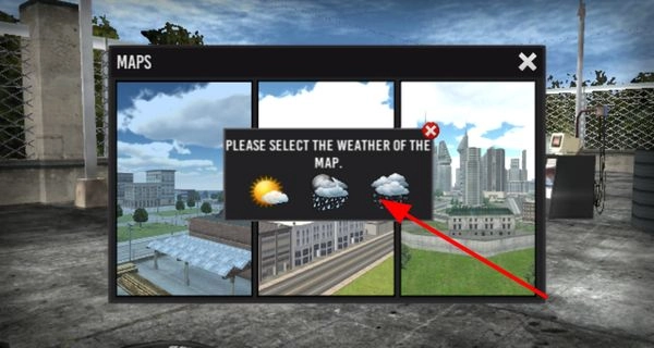 在主界面可以选择不同难度的关卡,也能挑选晴天、雨天等地图天气,不同的天气会对赛车的行驶体验产生影响。