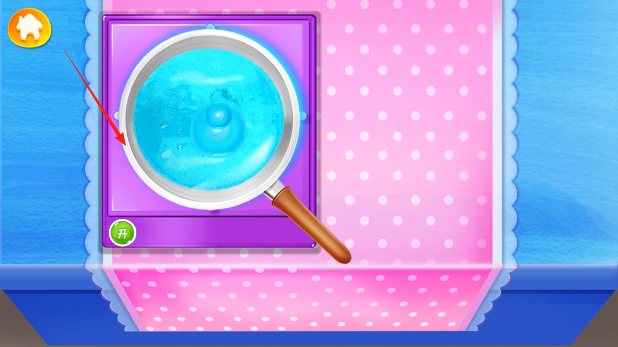 混合原料加热熔化:在平底锅中放入并搅拌所有糖果原料,接着加热直至其熔化,这一过程还原了真实的糖果制作流程,增强了制作时的真实感与参与体验。