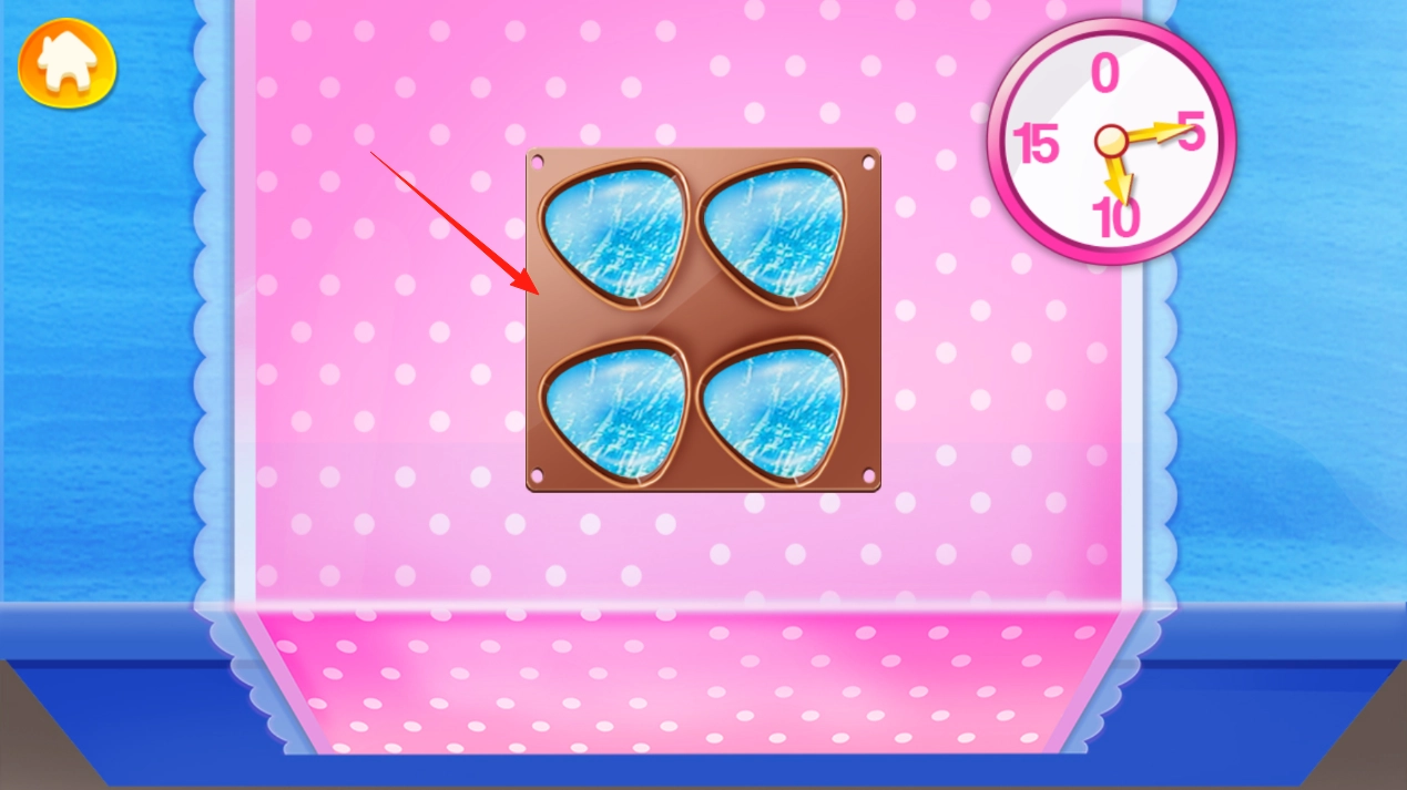 把调好的液体倒入心形模具时,得把控好倾斜的角度避免洒漏,右上角的时钟正在倒计时,等指针走完一圈橡皮糖就凝固完成了,做好的成品会闪烁着晶莹的光泽,模样格外可爱。