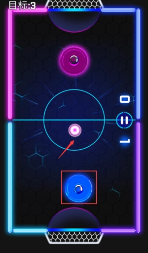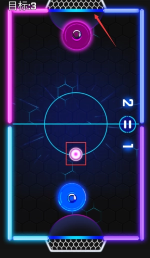 控制红框蓝色圆盘,击打冰球完成目标3分。