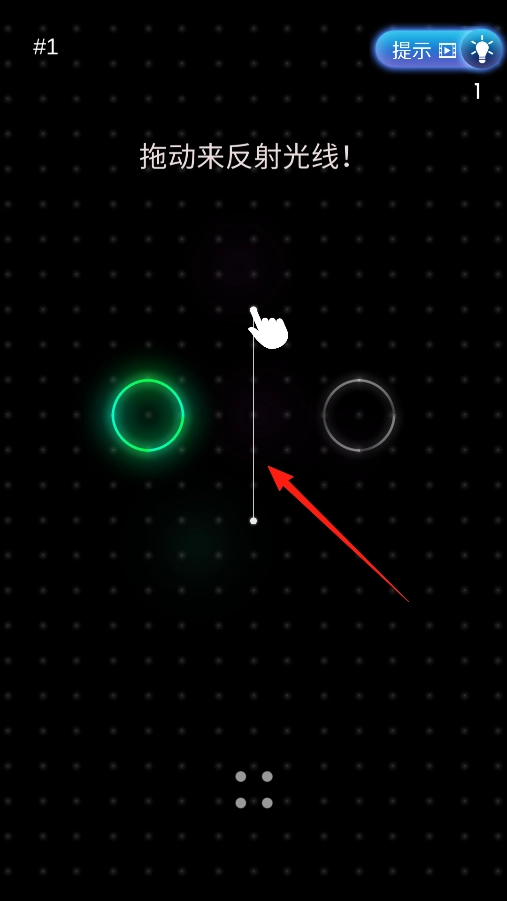 进入第1关后,界面上会出现绿色圆圈、白色圆圈以及光线。按照提示拖动相关元素来反射光线,通过滑动手指调整光线路径,使光线折射后连接起两个圆圈。只要成功完成反射就能通关,建议多尝试几次,找到正确的角度。