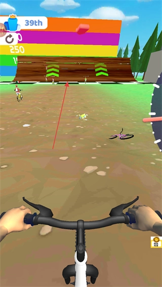 进入游戏后,注意观察屏幕左上角的排名显示(比如59th这样的标识),然后操控自行车在赛道上向前行驶。