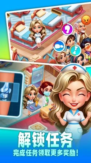 完成关卡任务后能获取金币奖励,这些金币可用于升级设备或是培训医护人员,进而提升治疗效率与病人满意度,助力医院实现稳步发展。