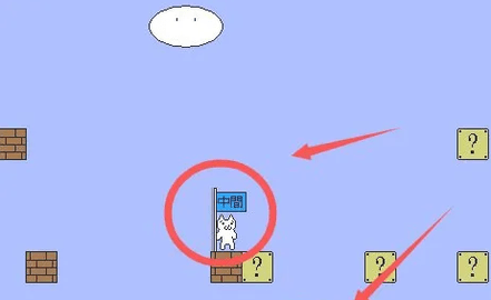 6、把标有“中间”的旗子吃掉,下面的小怪可以直接踩死。