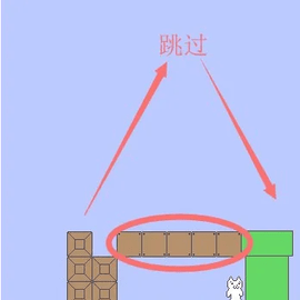 5、跳过悬崖后别着急往前走,前方的小怪和前两个砖头会在你经过时掉落,先引诱一下,等小怪和前两个砖头都掉下去之后再继续前进。
