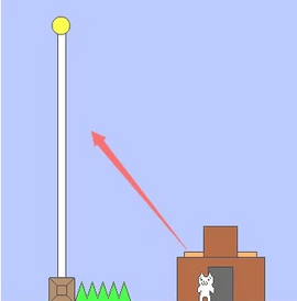 10、旗子会发射一道“黄条”,碰到就会失败,需要在楼梯上方来一个“大跳跃”,跳到旗子的后方。